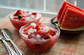 ü Buah semangka yang telah dibelah dua. Daging buahnya diambil lalu dipotong dadu atau bulat;