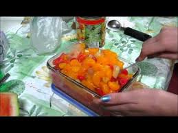 ü Buah melon yang telah dibelah dua. Daging buahnya diambil lalu dipotong dadu atau bulat;